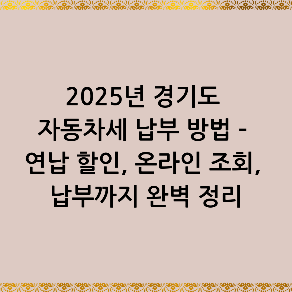 본 글에서는 2025년 기준 경기도 자동차세 납부 방법을 구체적으로 안내합니다.